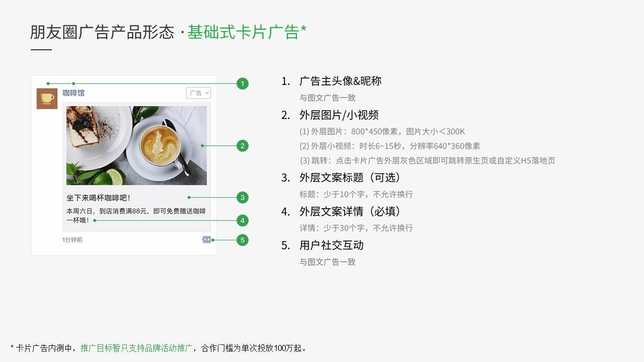* 卡片广告内测中,推广目标暂只支持品牌活动推广,合作门槛为单次投放100万起。