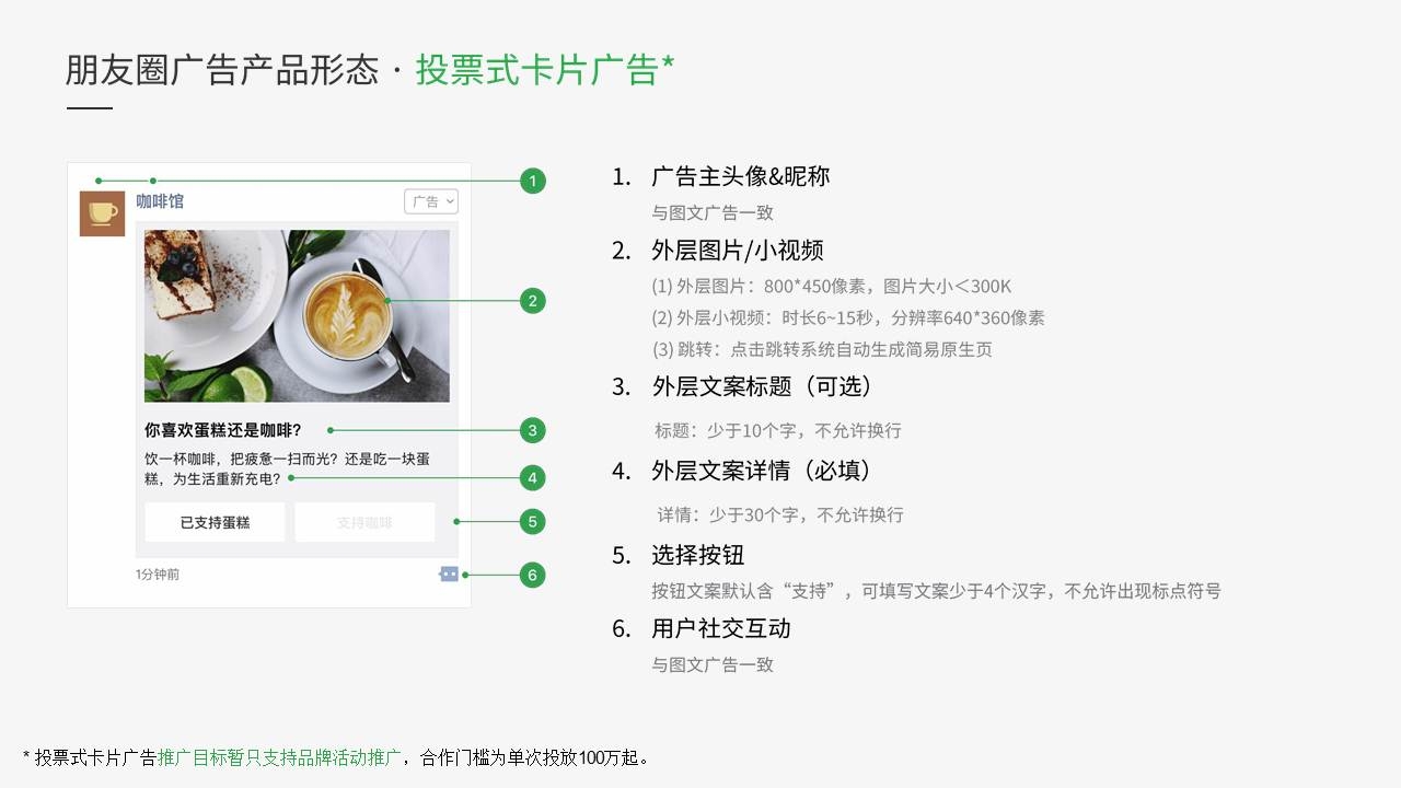 * 投票式卡片广告推广目标暂只支持品牌活动推广,合作门槛为单次投放100万起。