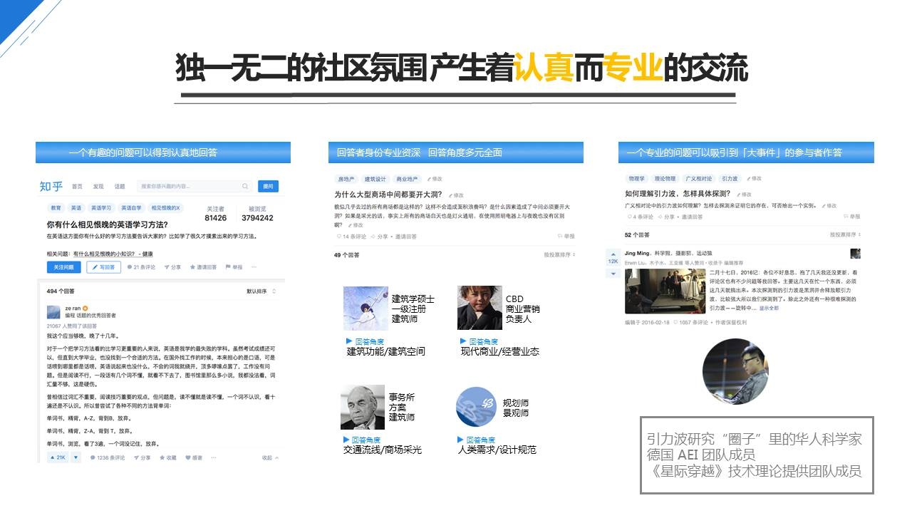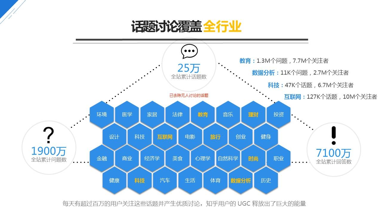 知乎是各行业专业领域话题的聚集地,是中文互联网优质的UGC平台之一