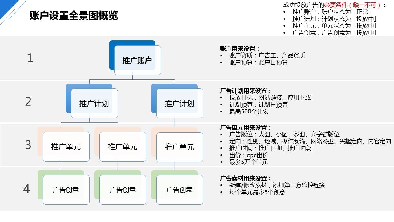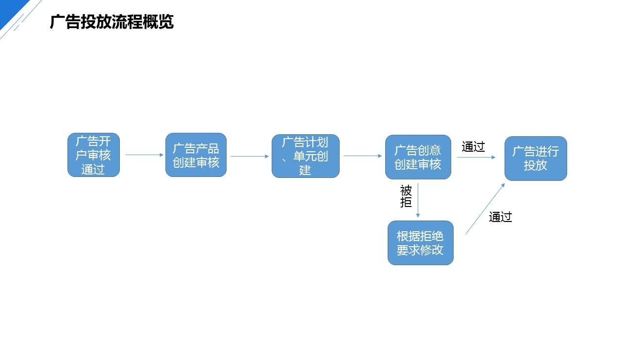 产品创建后,触发系统审核,审核通过+充值后,即可进行广告设置及投放