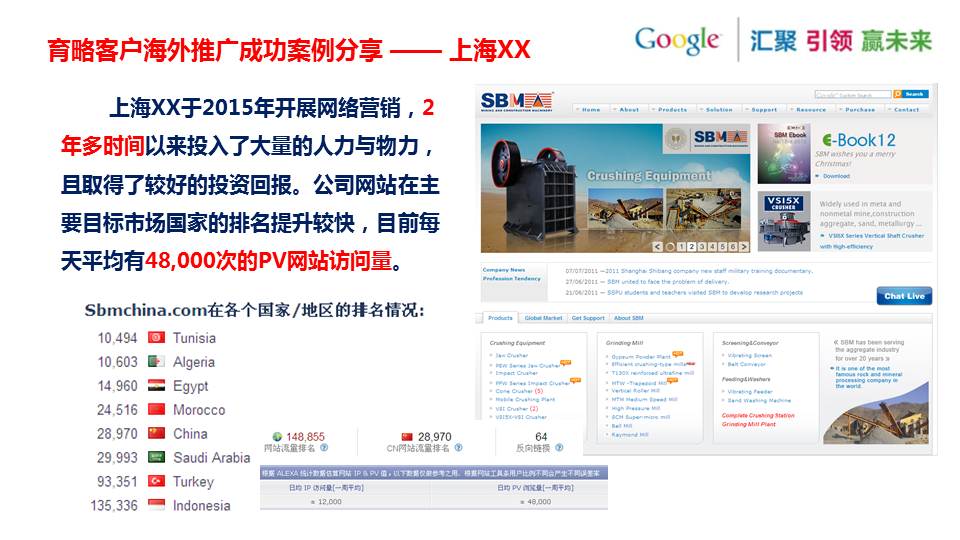 在全球Google(谷歌)和众多协作伙伴网站上推广您的产品和效劳。数据显现,到2012年7月停止,Google(谷歌)占全球62%以上的查找商场比例,掩盖200多个国家和区域,有100多种界面言语和国际域名,在美国、英国、法国、澳大利亚、瑞典、丹麦、印度、墨西哥、阿根廷、瑞士、瑞典等国家商场占有率和拜访量均排名榜首。您运用Google AdWords关键字广告出口易方案,能够把广告展现在Google(谷歌)以及Google(谷歌)数以万计的协作伙伴的网站上,掩盖全球,让查找您产品和效劳的用户自动找到您。