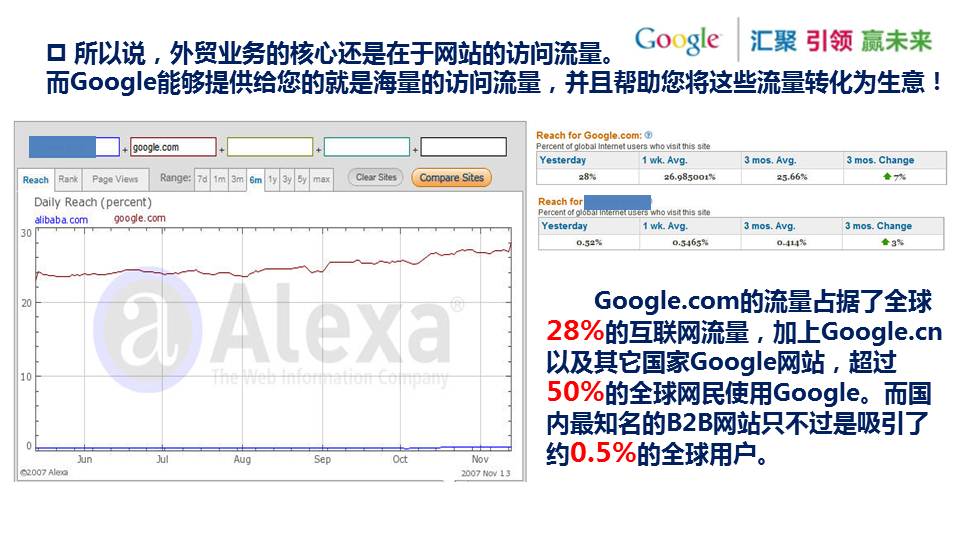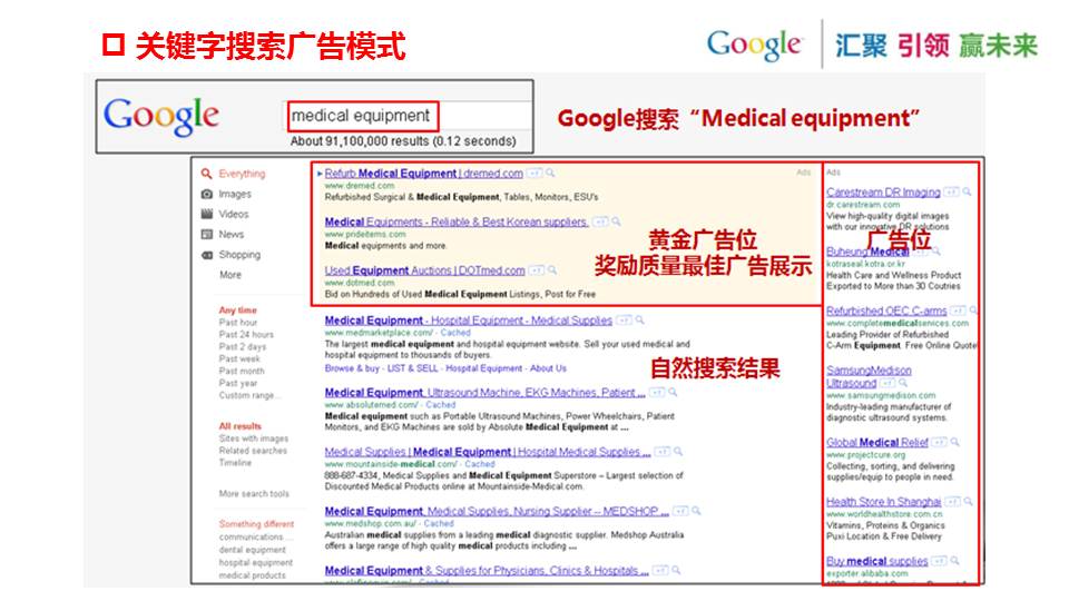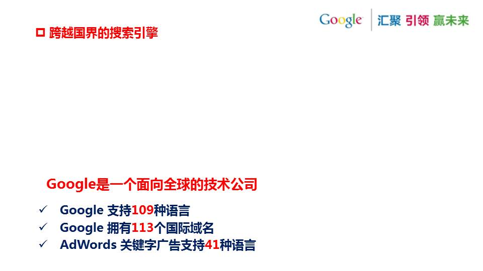 无人可永居首位:Google首创的“质量得分”评价体系将协助体现优胜的广告以更低的点击价格取得更好的广告排名。
