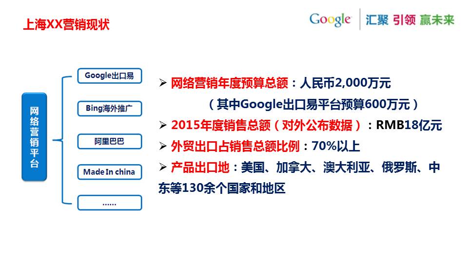 谷歌海外推广合作:巫经理,18221309711(同微信)。谷歌海外推广是Google搜索里面一种按点击付费的网络推广模式。企业支付少量的费用就可以给带来大量潜在客户,有效提升企业销售额和品牌知名度。