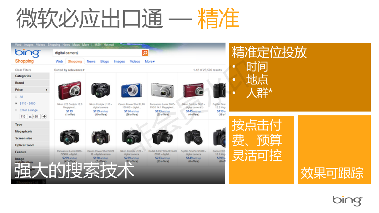 必应(Bing)广告已正式更名为微软广告,Bing广告推广是以基于必应的搜索广告为核心的微软全球化网络营销服务,旨在帮助中国出口型企业以一种低门槛的推广方式面向全球高质用户推广自己的品牌和产品。通过丰富的产...