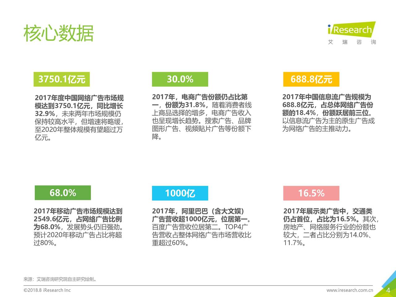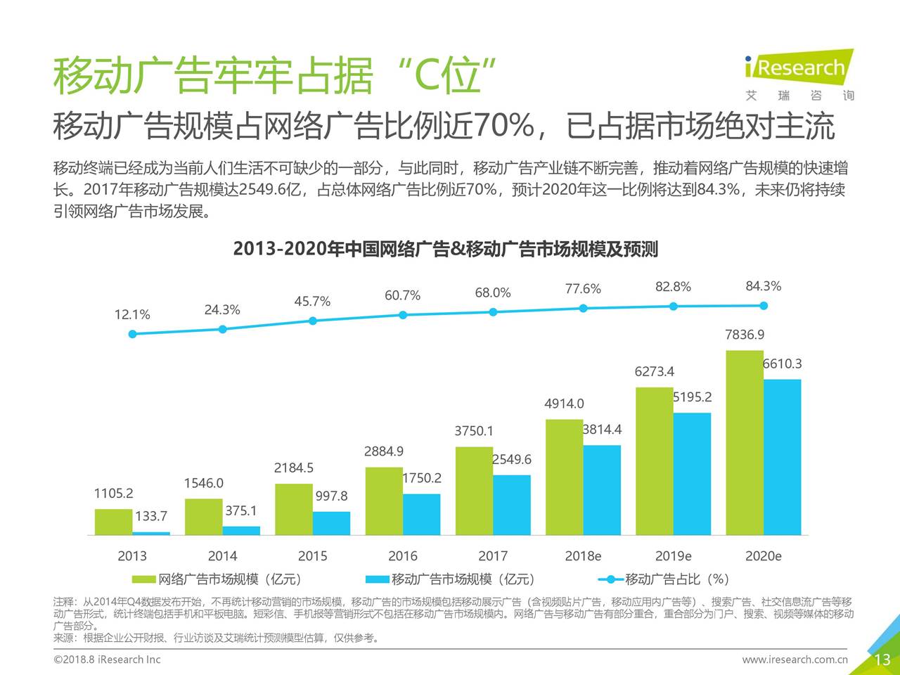 网络广告依然是互联网产业的核心商业模式,尤其是移动广告已经成为引领增长的关键点,2017年移动广告规模达2549.6亿,原生广告的高速发展成为行业的共同