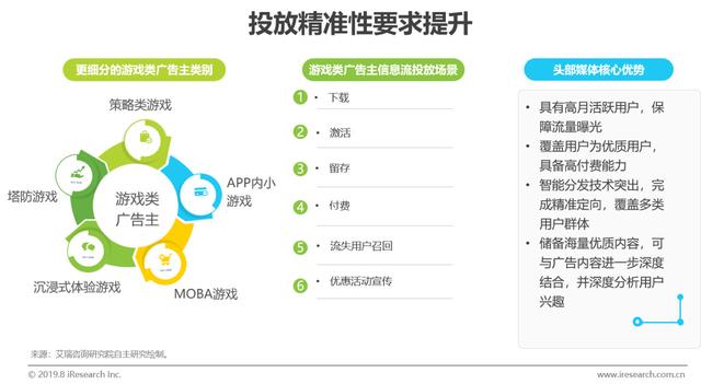 随着宏观环境向良好发展,游戏创意及类别不断丰富,未来可能出现VR、AR技术深度结合的沉浸式游戏种类。同时,广告主对高性价比的转化效果要求仍未放松,同时KPI考核标准进一步向后端转移,重心从简单的下载评估转变为留存、付费评估。在此背景下,选择适当的优质媒体将成为获得良好投放效果的关键因素之一。除覆盖大量优质的用户群体外,优质媒体需对用户群体有更为精准的标签划分。